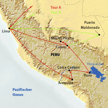 Lima - Ica - Nazca - Islas Ballestas - Arequipa - Colcatal - Titicaca-See - Cusco - Machu Picchu - Amazonas-Tiefland
