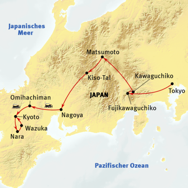 Tokyo - Fujikawaguchiko - Kawaguchiko - Matsumoto - Kiso-Tal - Nagoya - Omihachiman - Kyoto - Nara - Wazuka - Kyoto