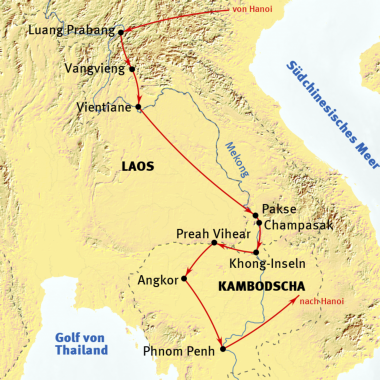 Luang Prabang - Vangvieng - Vientiane - Pakse - Champasak - Wat Phou - Khong Island - Preah Vihear - Angkor - Phnom Penh