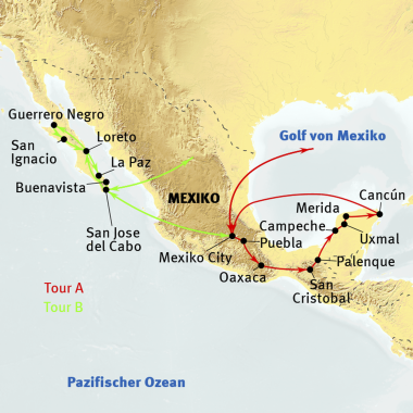 San José del Cabo - Loreto - Guerrero Negro - San Ignacio - Loreto - La Paz - Cabo San Lucas - San José del Cabo