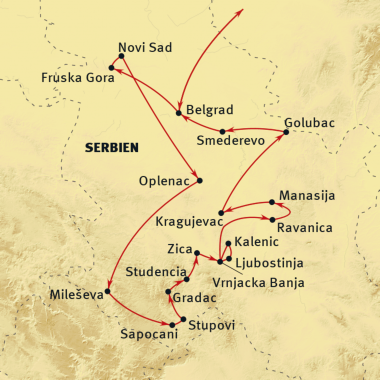 Der Reisetermin ist frei wählbar, vorbehaltlich Verfügbarkeit von Unterkünften und Serviceleistungen. Die beste Reisezeit für Serbien ist das Frühjahr (ab April) und der Herbst (Sept. bis Mitte Okt.), aber auch der Sommer ist schön, kann jedoch sehr heiß werden. Besonders schön ist es zum orthodoxen Osterferst in Serbien (20. April 2025 und 12. April 2026), bei dem man auch einen Ostergottesdienst besuchen kann.
