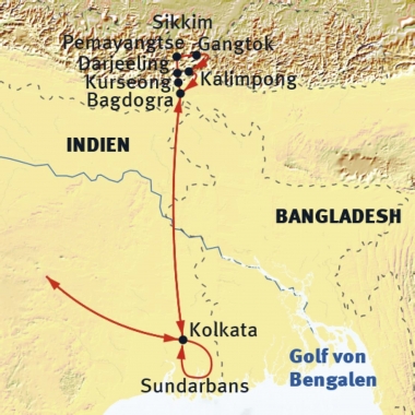 Visum: Für Indien inkl. Sikkim erforderlich. Wir empfehlen, einen Visumservice zu beauftragen oder das Visum im Online-Verfahren (z.Zt. 80,- USD) zu beantragen.